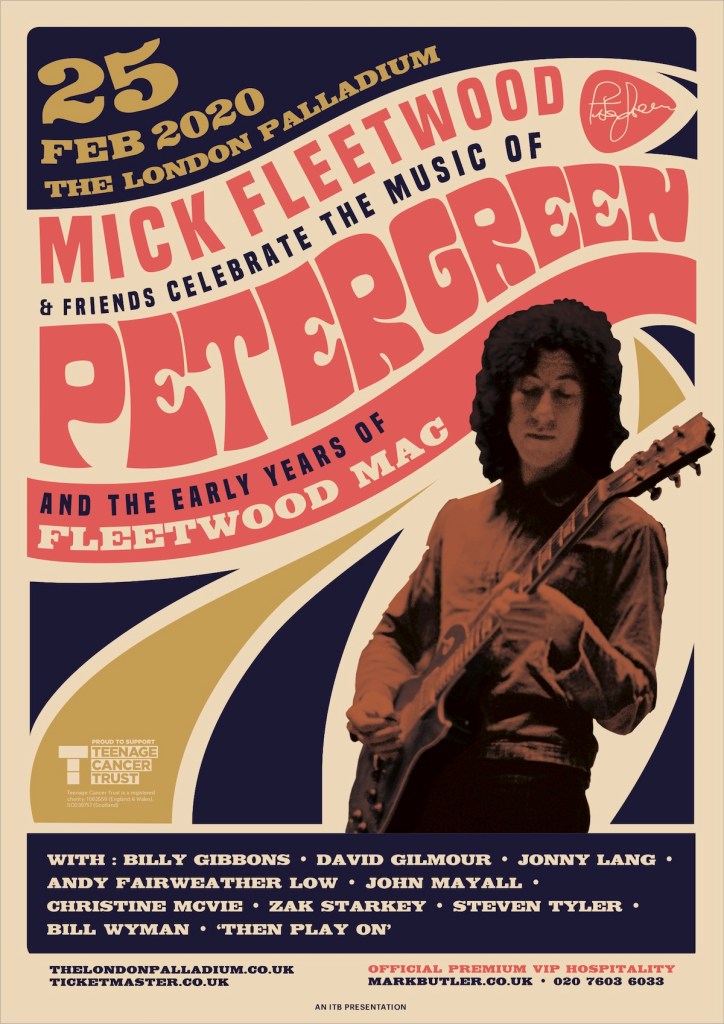 There is only 6 days left till I visit London and be fortunate enough to be one of the ticket holders that will witness a one off performance from in my opinion some of the music industries top artists and session musicians. They are all there to perform and celebrate the music of Peter Green, one of the founder members of Fleetwood Mac.